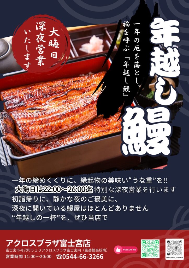 大晦日は22:00~26:00まで、特別な深夜営業いたします。