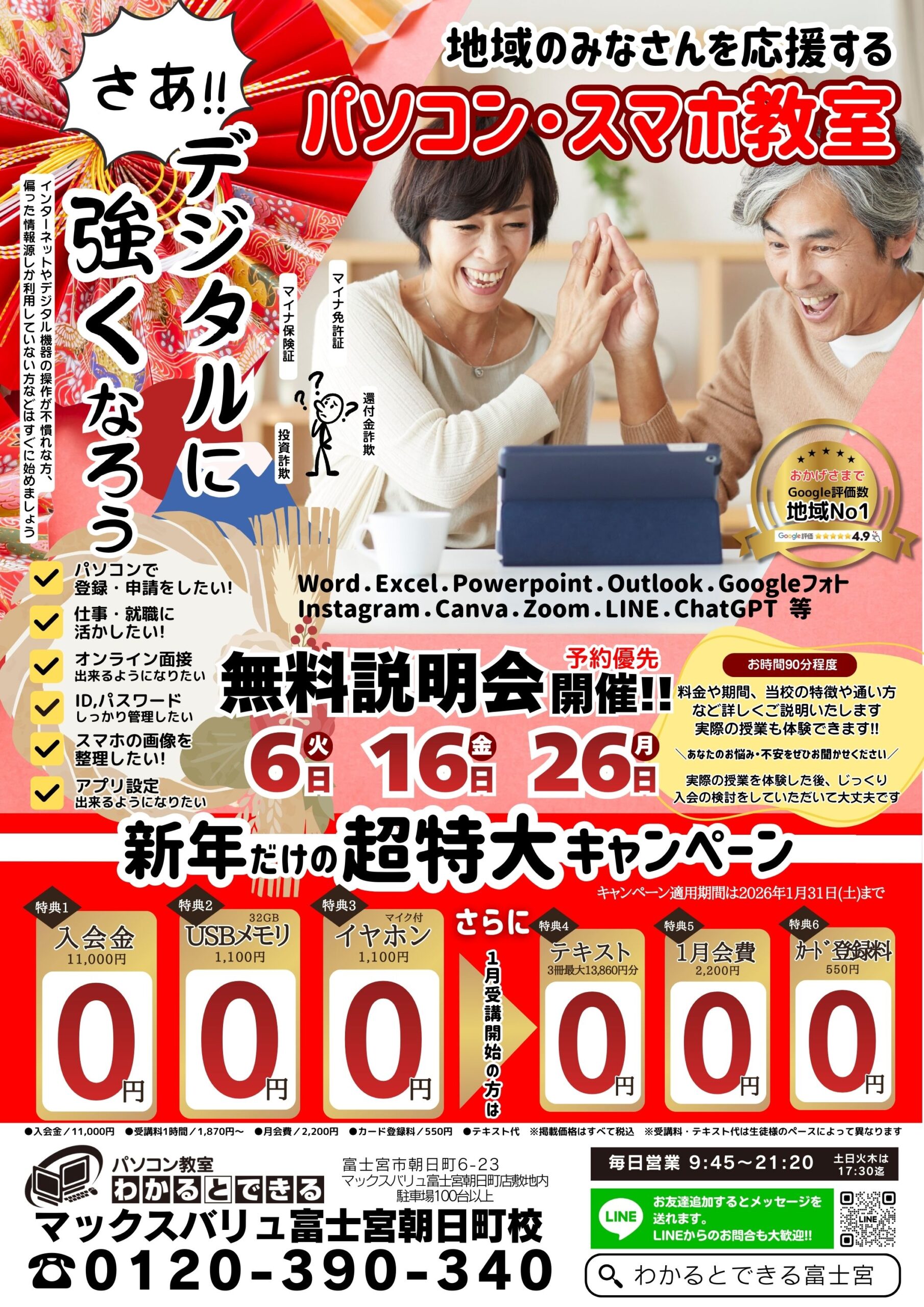 パソコン教室わかるとできる 新年だけの超特大キャンペーン