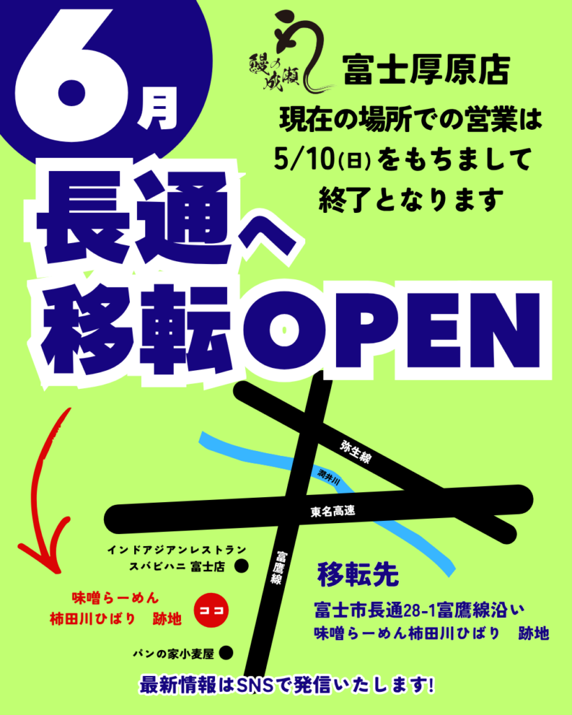 現在の富士厚原店は 5/10(日) に現店舗での営業を終了し、
